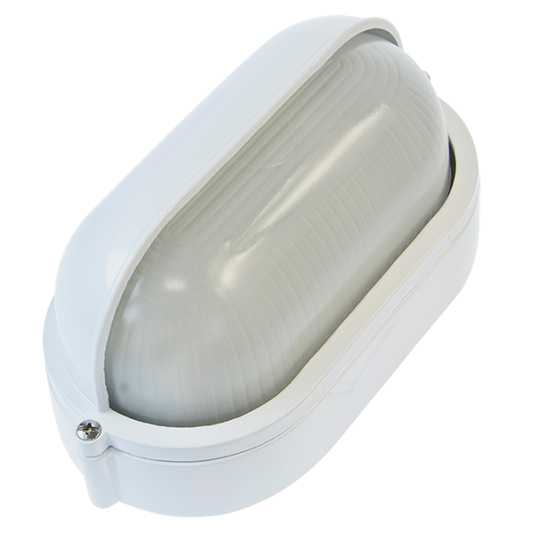 60W Max. E27 Oval Bulkhead With Eyelid – IP54 – White
