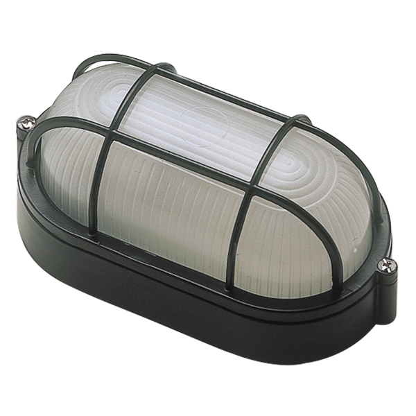 60W Max. E27 Oval Bulkhead With Guard – IP54 – Black