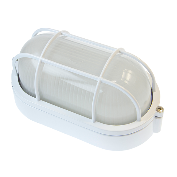 60W Max. E27 Oval Bulkhead With Guard – IP54 – White