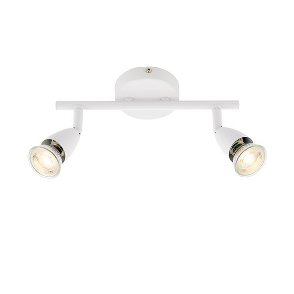 A simple twin spotlight bar from the Amalfi range finished in gloss white. Fully adjustable so light can be directed exactly where you need it. Suitable for commercial and domestic use. Matching items and different colour options available. Compatible with LED GU10 lamps Fully adjustable Dimmable 350 degree rotation and 90 degree tilt Gloss white Constructed from steel **Normal delivery 2-3 days – please call to confirm availability. Carriage charges may be applicable on small value orders. **