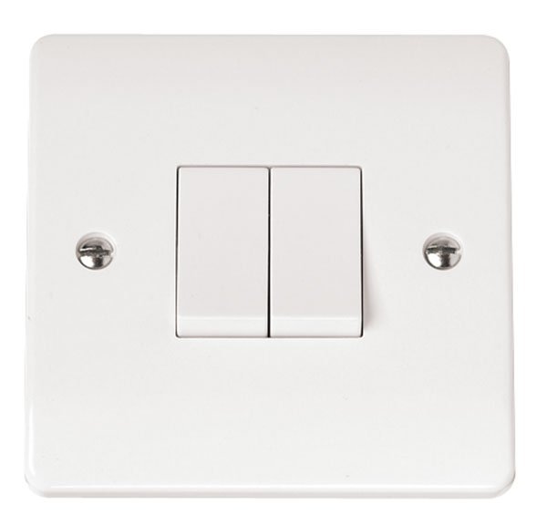 Click Mode 2 gang 2 way Light SwitchWhite Plastic Round Edge Finish **Normal delivery 2-3 days – please call to confirm availability. Carriage charges may be applicable on small value orders. **