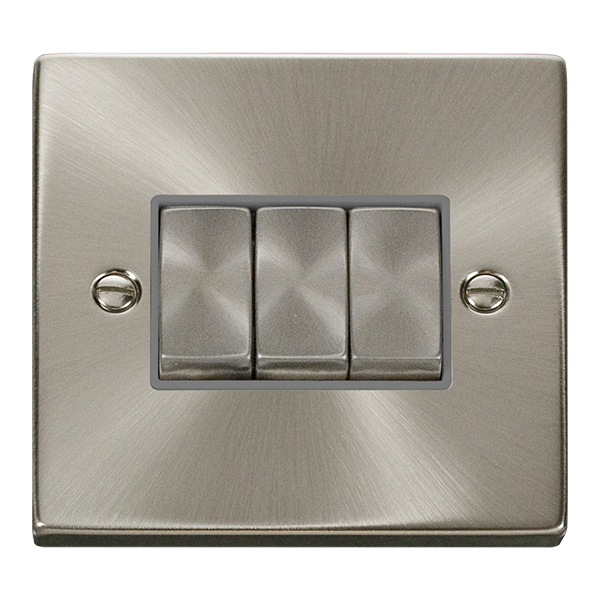 Satin Chrome 3 Gang Switch (Grey Surround)